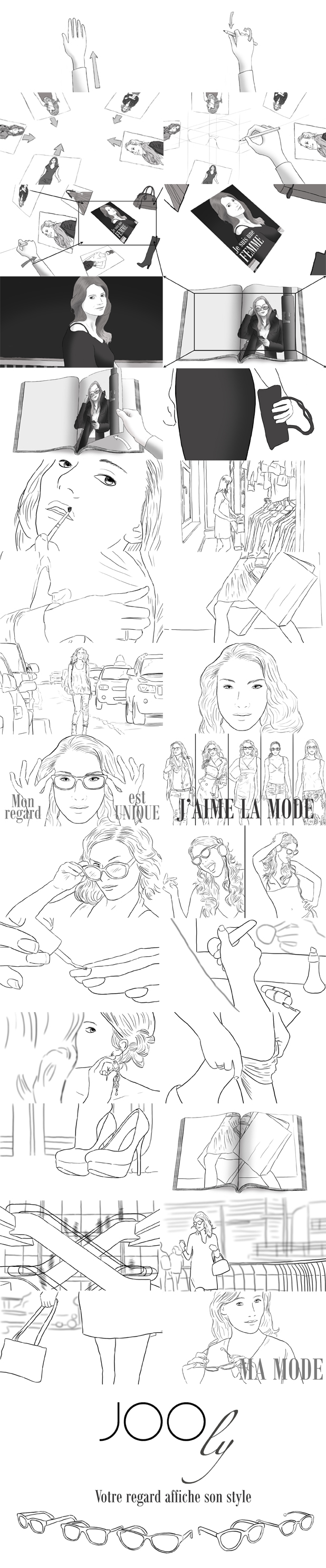Storyboard pour une publicité du lancement de la marque de lunette Jooly.